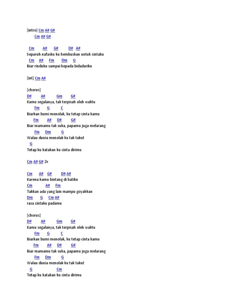Am em f c g separuh nafasku…kuhembuskan untuk cintaku Lagu ini dirilis oleh judika pada tahun 2013 . intro f a# f a# gm a dm gm manakala hati menggeliat mengusik renungan c a#.